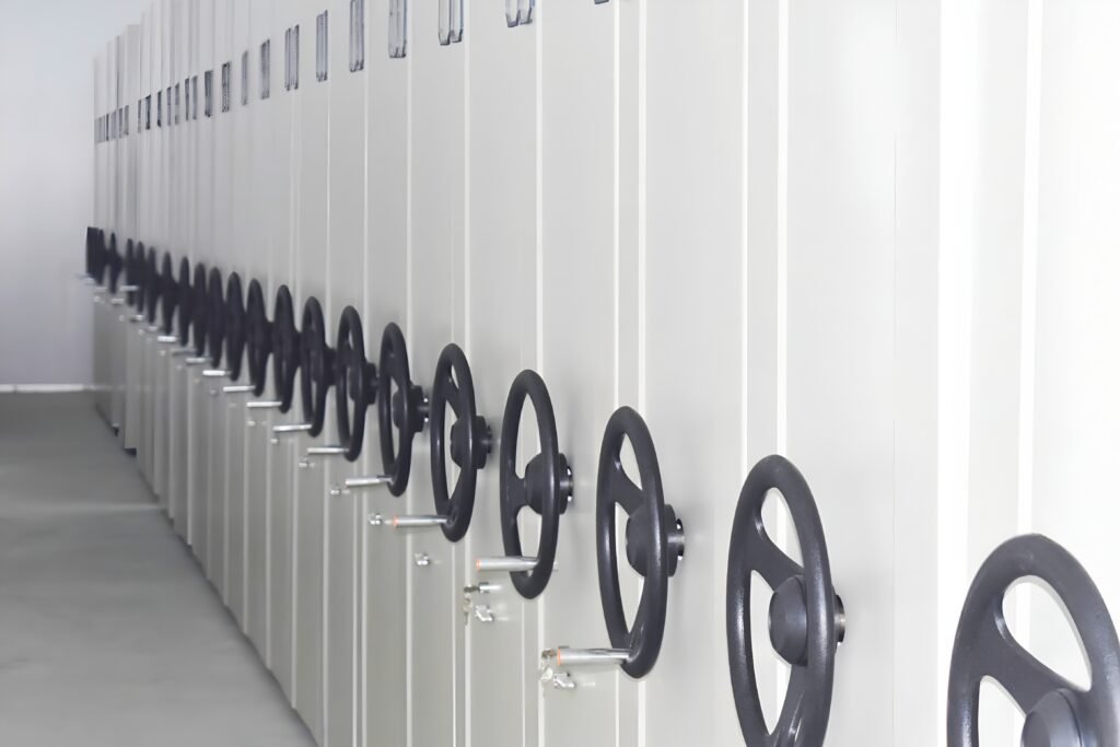 - Enhanced Security: The system can be completely locked down in its compacted state, with access controlled by PIN codes. This creates a highly secure environment for high-value inventory, sensitive archives, or confidential documents.